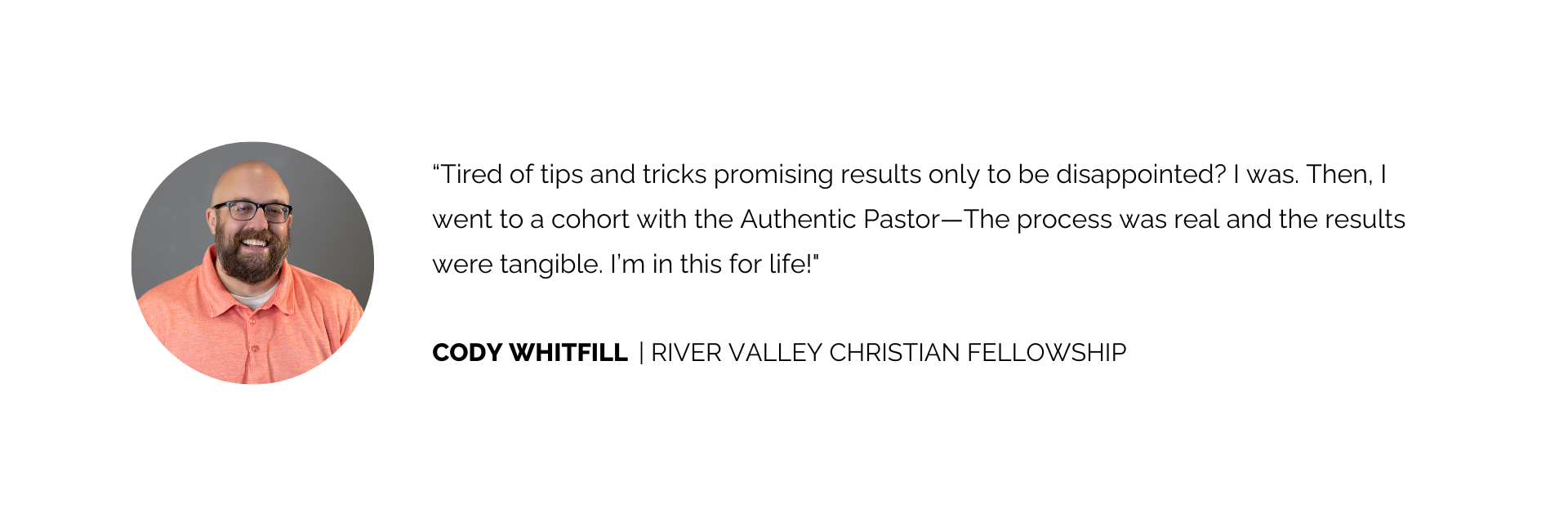 “Tired of tips and tricks promising results only to be disappointed? I was. Then, I went to a cohort with the Authentic Pastor—The process was real and the results were tangible. I’m in this for life!"