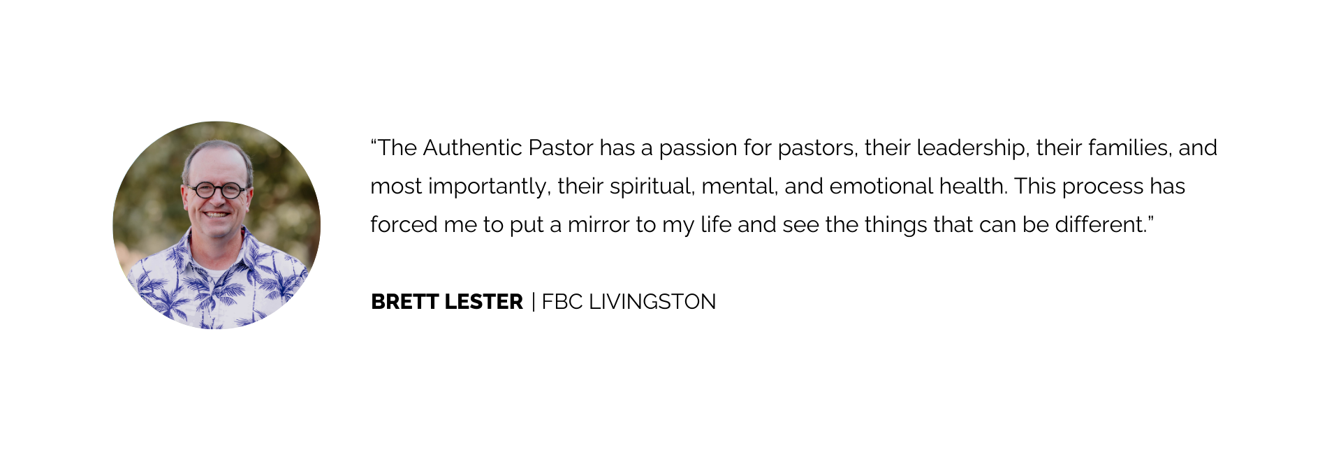 “The Authentic Pastor has a passion for pastors, their leadership, their families, and most importantly, their spiritual, mental, and emotional health. This process has forced me to put a mirror to my life and see the things that can be different.”
